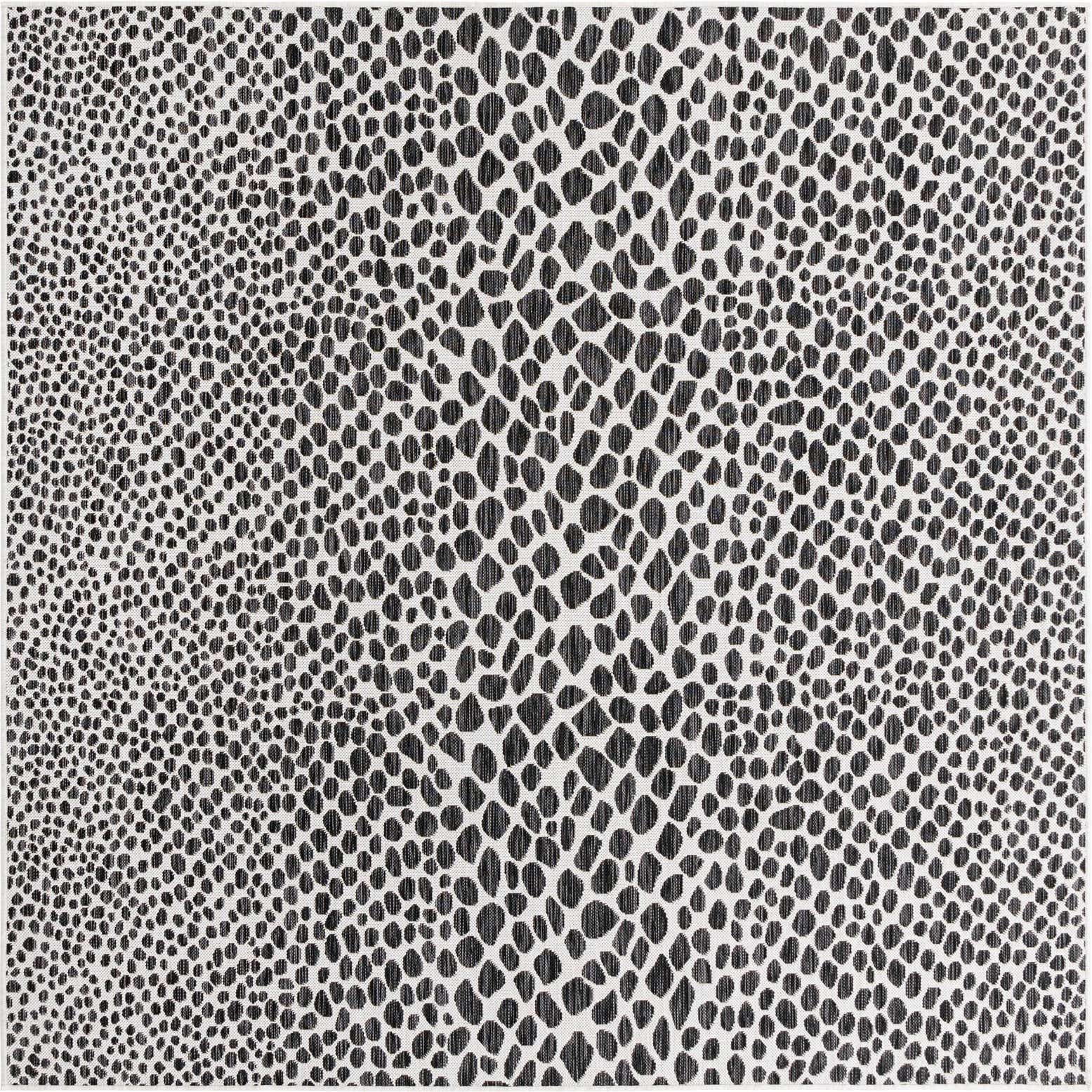 Modernes Design: Der Tulum Teppich zeichnet sich durch ein wiederkehrendes Muster aus miteinander verbundenen Diamantformen aus, das auf einem dunklen Hintergrund für Kontrast und visuelles Interesse sorgt. Dieses Design verleiht dem Teppich einen zeitgemäßen und stilvollen Look, der jede Outdoor-Einstellung ergänzt.