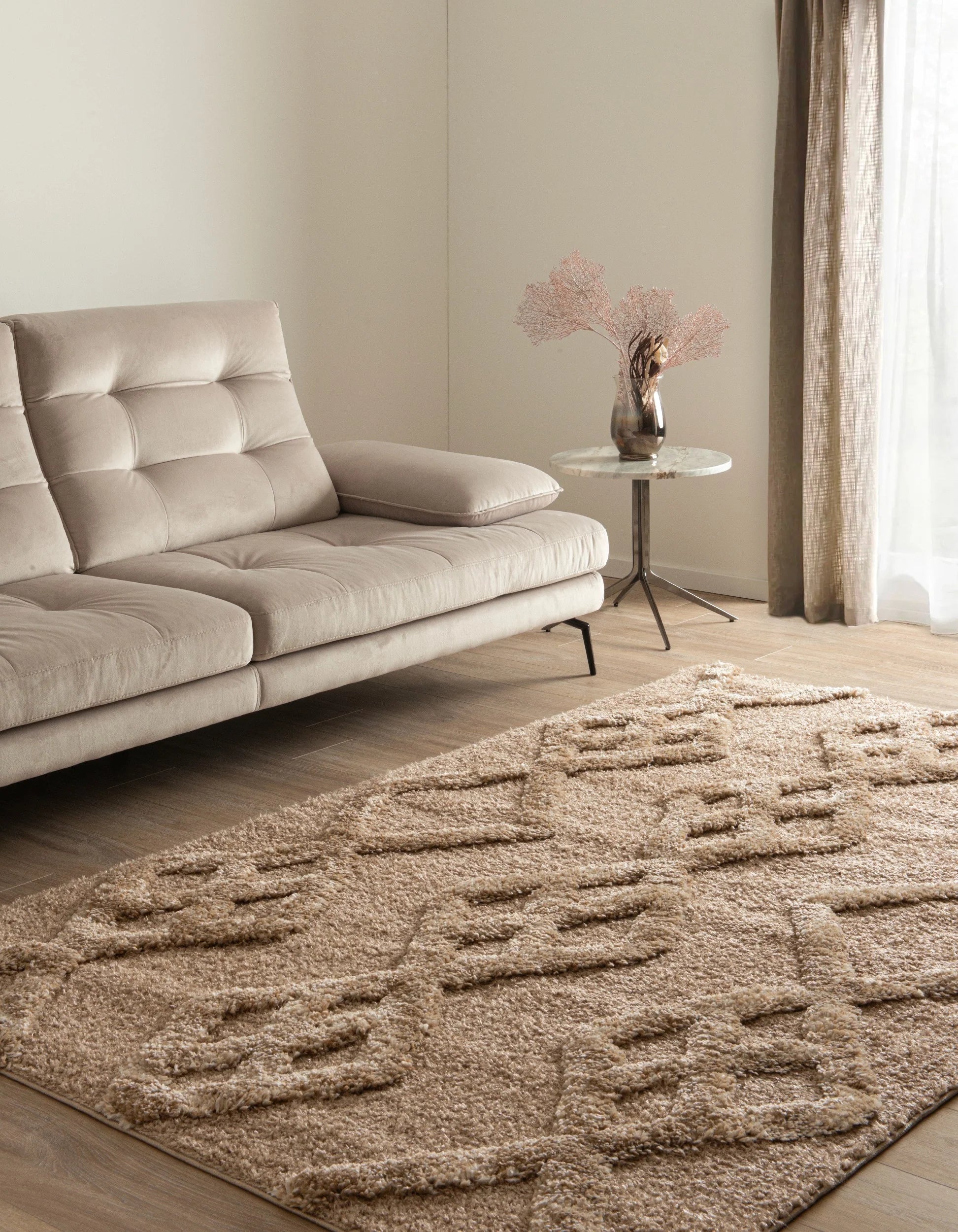 Moderne Designs: Die Kollektion zeichnet sich durch zeitgemäße Muster und Farben aus, die jedem Raum eine frische Note verleihen. Die subtilen Farbtöne und das minimalistische Design machen diesen Teppich zu einer vielseitigen Wahl, die sich nahtlos in verschiedene Einrichtungsstile einfügt.