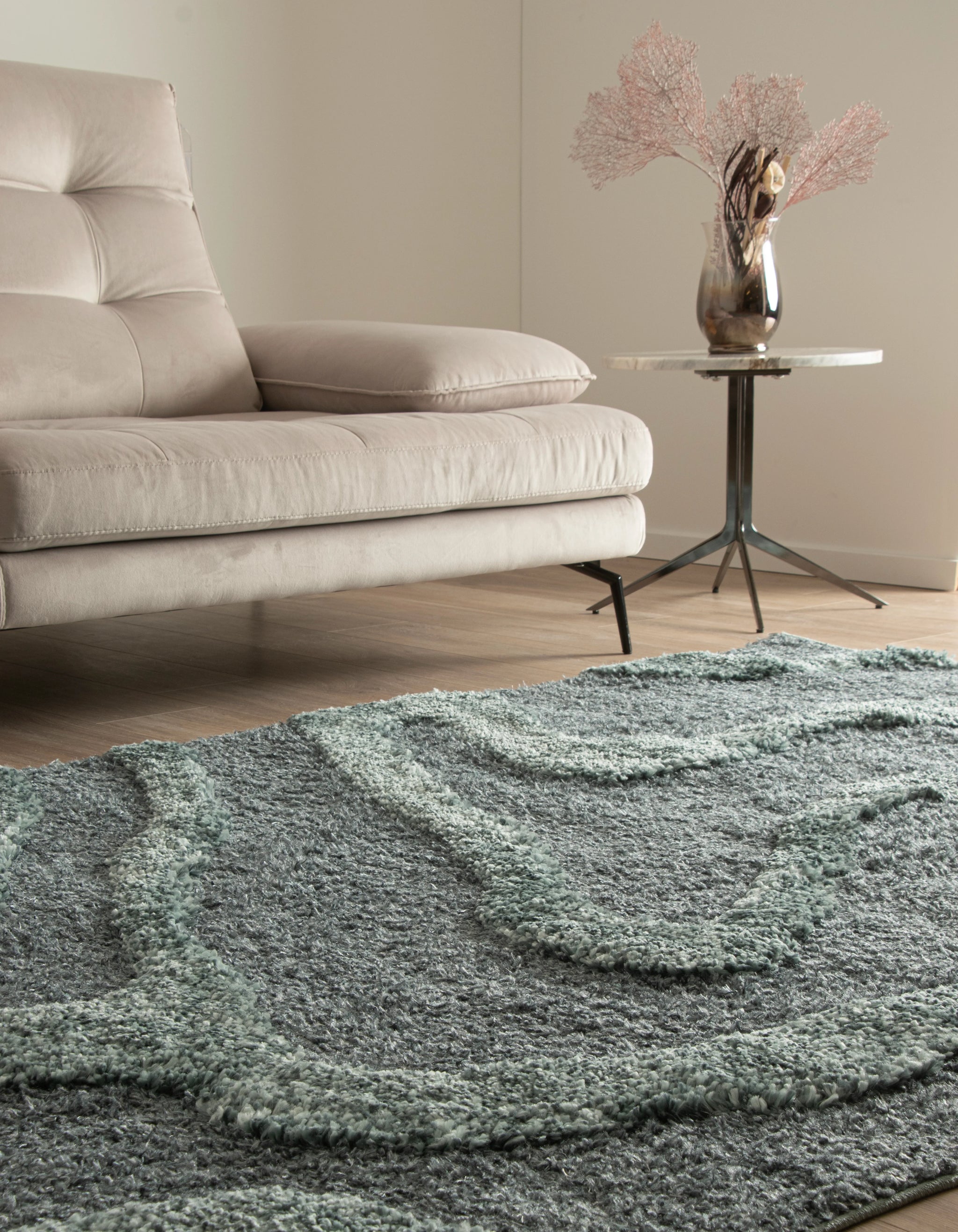 Moderne Designs: Die Kollektion zeichnet sich durch zeitgemäße Muster und Farben aus, die jedem Raum eine frische Note verleihen. Die subtilen Farbtöne und das minimalistische Design machen diesen Teppich zu einer vielseitigen Wahl, die sich nahtlos in verschiedene Einrichtungsstile einfügt.
